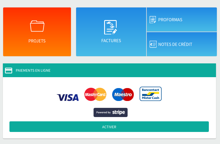 Recevez les paiements de vos clients grâce au widget STRIPE disponible sur notre plateforme.